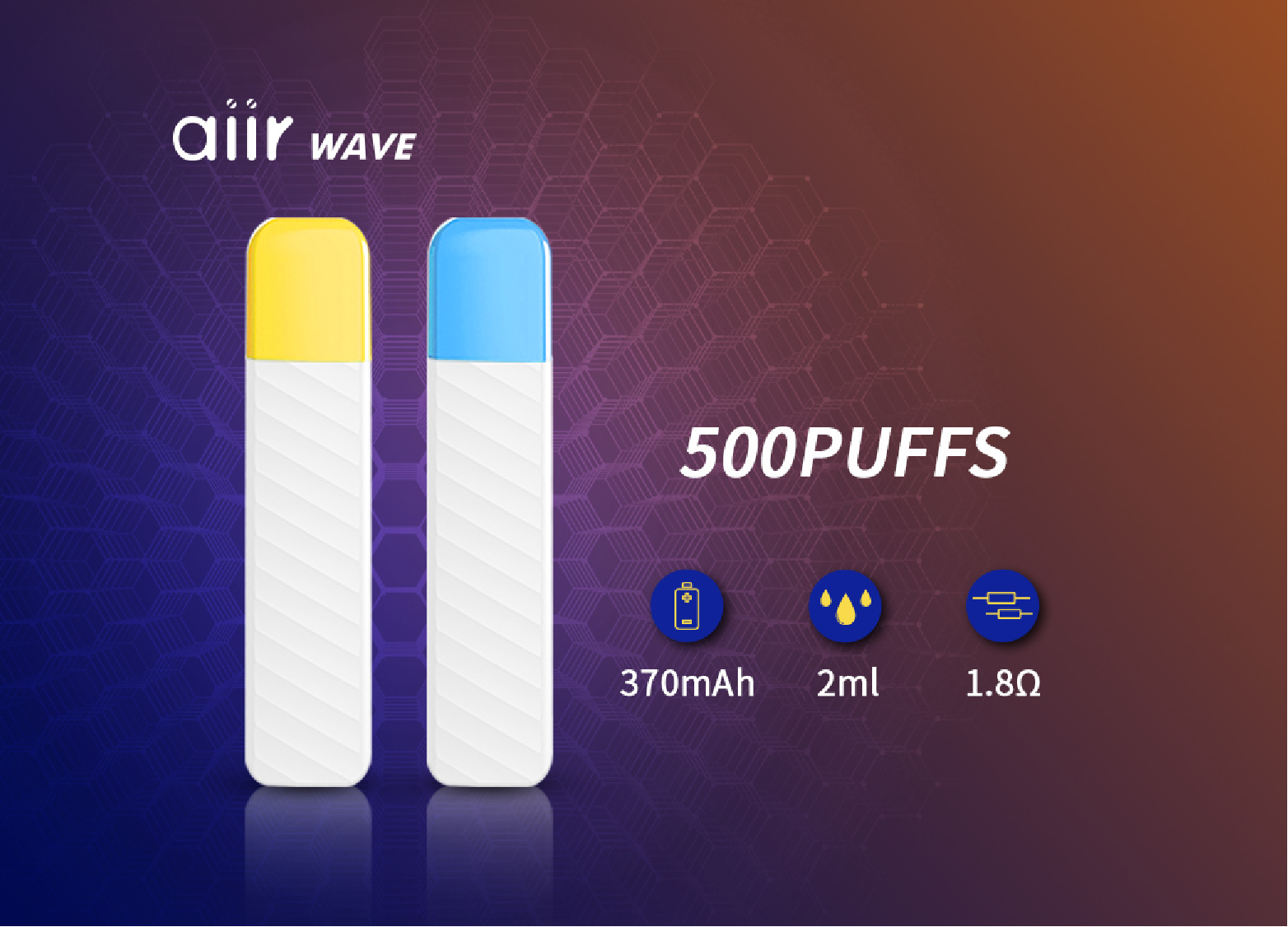 Aiir Wave is a new disposable vape Ecig, designed with wavy lines and dust free cap, aiir wave combines fashion and cleanliness together, this vape device delivers up to 500puffs with different flavors ejuice, with a 1.8ml of ejuice, it holds more nicotine salt than 3 Juul Pods, the 370mAh battery is big enough to last for 2 days for an adult vapers extract every last drop of delicious eliquid.¥ 0.00立即购买